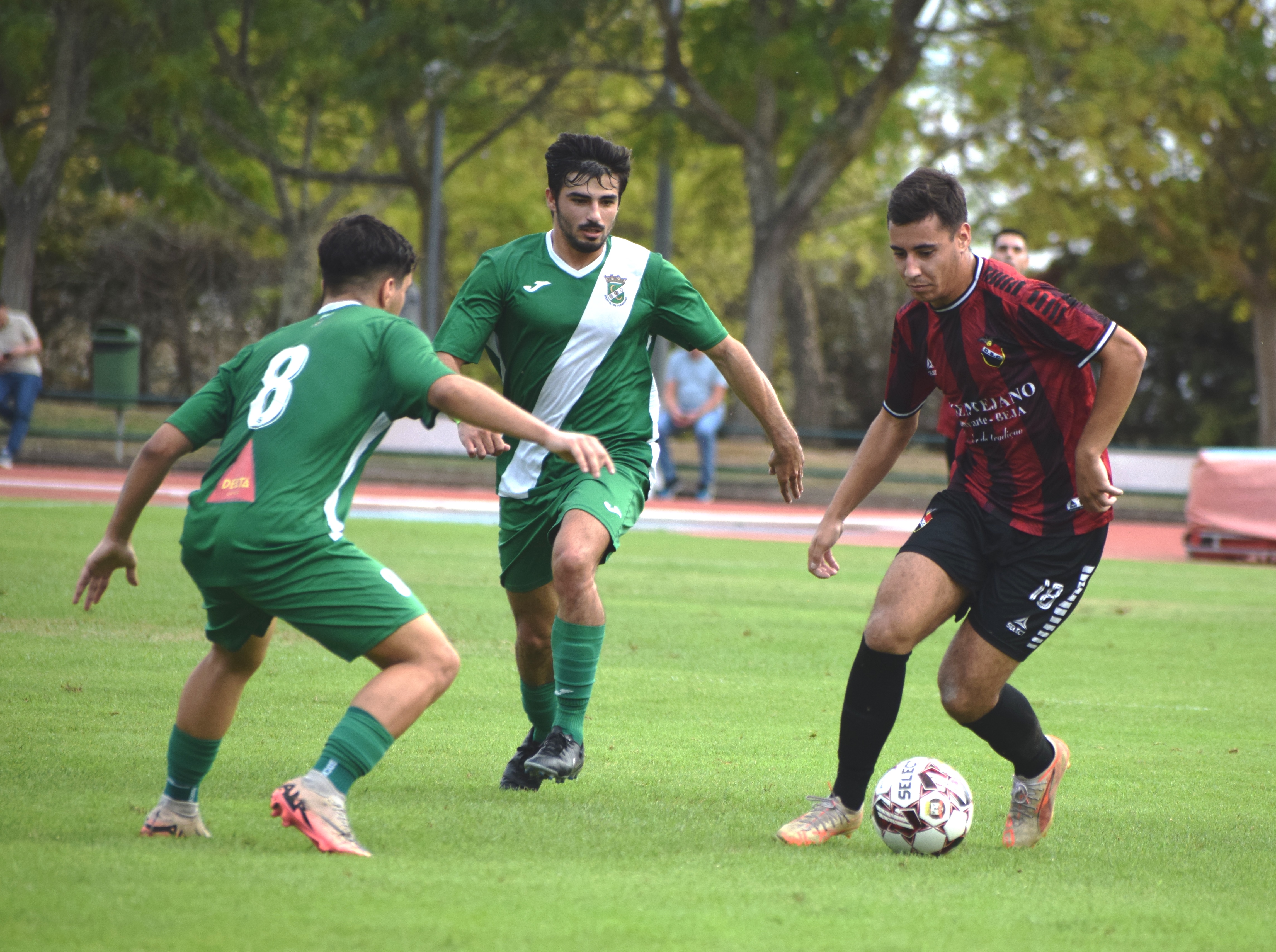 Assim vai o “Distritalão”! À espera do dia 30 de novembro, data em que se realizarão os dois jogos, em atraso, que acrescentarão, ou não, mais verdade à tabela classificativa da prova. Por ora, o Mineiro, que venceu tangencialmente o Milfontes, mantém-se na frente, à condição, com mais um ponto do que o Castrense, que derrotou, com aparente facilidade, o vizinho Desportivo de Almodôvar. O Albernoense continua a fazer uma boa carreira, desta vez ganhou ao Moura e fixou-se no terceiro lugar. O Renascente foi outra das equipas vitoriosas desta sexta ronda da prova: ganhou ao Sporting de Cuba, por duas bolas a zero. O Aldenovense recebeu o Sporting Ferreirense, numa partida que terminou sem golos e com um ponto ganho por cada um dos conjuntos. Finalmente, no Complexo Desportivo Fernando Mamede, na cidade de Beja (na foto), apresentou-se o Sport Clube Odemirense, clube que se debate com um vazio diretivo, para defrontar o Despertar Sporting Clube. Clubes que não tiveram um início de prova muito promissor, daí a coabitação no rodapé da pauta dos pontos. O Despertar procurava mesmo a sua primeira vitória, e conseguiu-a, num rasgo de talento de Celestino Silva, autor de dois dos três tentos da formação do “Rasga”. O jogo que opõe o Odemirense ao Aljustrelense e a deslocação do Castrense a Albernoa merecem o destaque da jornada do próximo domingo. Aljustrelense e Castrense ainda não perderam, o Sporting de Cuba continua sem pontuar.A sexta jornada do campeonato distrital da segunda divisão ficou marcada, entre outras incidências, pela cedência de pontos do Bairro da Conceição, no seu terreno e frente aos “bês” do Aldenovense, pelo triunfo do Negrilhos sobre o Messejanense, num dérbi concelhio, e pela goleada sofrida pelo Pereirense no reduto da equipa de Aldeia dos Fernandes. A estrelinha do Futebol Clube de Serpa voltou a brilhar, numa partida difícil frente ao Portimonense, em que um autogolo dos algarvios ofereceu os três pontos aos alentejanos. Neste domingo acreditamos que possa pontuar no reduto do Sintrense. O Vasco da Gama teve um compromisso que se esperava difícil: em Moncarapacho perdeu tangencialmente e, agora, neste domingo, e sob o risco de se ir tornando tarde, terá de se redimir da recorrente perda de pontos frente à formação do Lagoa.