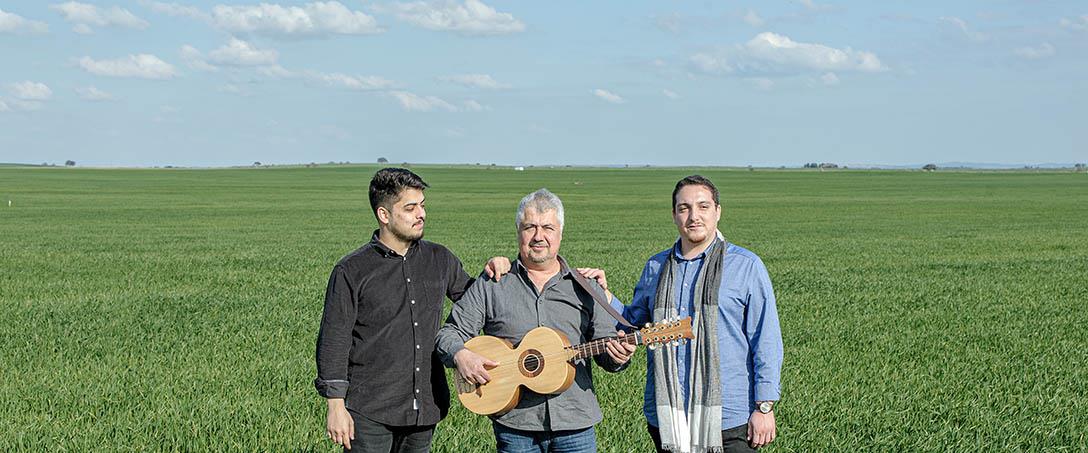 O cante era “música de velhos”, mas “estava na memória” e as saudades nascidas na estadia alfacinha transformaram-no “numa paixão”. Com Paulo Colaço, fez recolhas junto dos que sabiam tudo sobre modas e o toque da campaniça. Ti Manel Bento e Francisco Bailão foram as fontes onde foi “beber tudo o que sabe” acerca deste instrumento característico do Baixo Alentejo. No início, o grupo limitava- -se a cantar acompanhados pela viola campaniça, tocada por Paulo Colaço, e por percussão. Mas, em 2006, Paulo Colaço abandona o grupo e Zé Emídio assume a viola campaniça. “Tive de me mandar à campaniça e aprender a tocá-la em poucos meses”, diz.