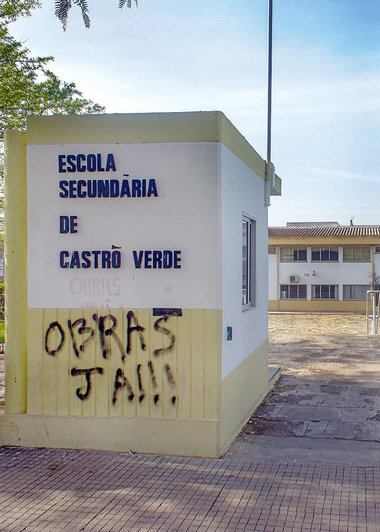 São cerca de 400 os utentes diários da Escola Secundária de Castro Verde. O equipamento, inaugurado em 1986, há muito que precisa de obras de requalificação. Augusto Candeias, diretor do Agrupamento de Escolas de Castro Verde (ESCV), que desde 2012 é constituído por sete estabelecimentos de ensino que vão desde a educação pré-escolar ao secundário – com cursos científico- humanísticos e profissionais –, desfia o caderno de encargos das obras necessárias: “O isolamento térmico é prioritário. As oscilações de temperatura são elevadas o que, no verão, torna insuportável trabalhar e estudar com mais de 40º e, no inverno, com o frio de rachar é difícil resistir sem recorrer a agasalhos e mantas”. Para além desta questão, aponta ainda como fundamental a substituição do pavimento em cerâmica por outro em linóleo (mais térmico) e dos estores antigos por outra solução mais moderna e eficiente, atacar as infiltrações de água e acabar de substituir o amianto que ainda resiste no edifício. Urgente também é a opção por lâmpadas tipo LED, que teria a vantagem de diminuir a rubrica do orçamento destinada à energia e que absorve mais de 50 por cento das despesas mensais. No início do mandato o executivo municipal de Castro Verde elegeu a requalificação da escola secundária como uma das suas prioridades. No entanto, mais de dois anos passados a obra ainda não começou. António José Brito, presidente da autarquia, diz que já estiveram “bastante mais longe” e que neste momento continua a trabalhar para iniciar as obras. “Tem sido um caminho longo, exigente e com várias etapas cumpridas, sempre em total articulação com a direção do Agrupamento de Escolas de Castro Verde.